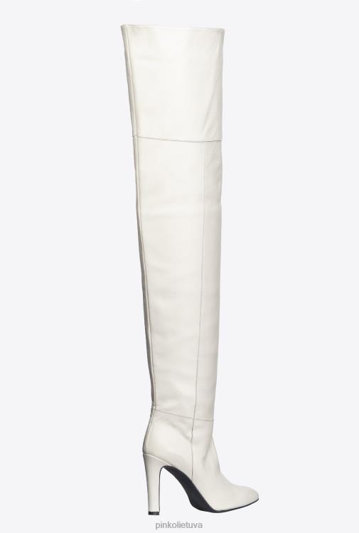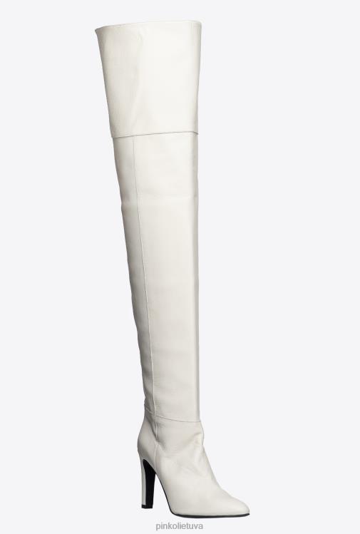 batai | DH06P1106 odiniai batai iki šlaunų Pinko baltas