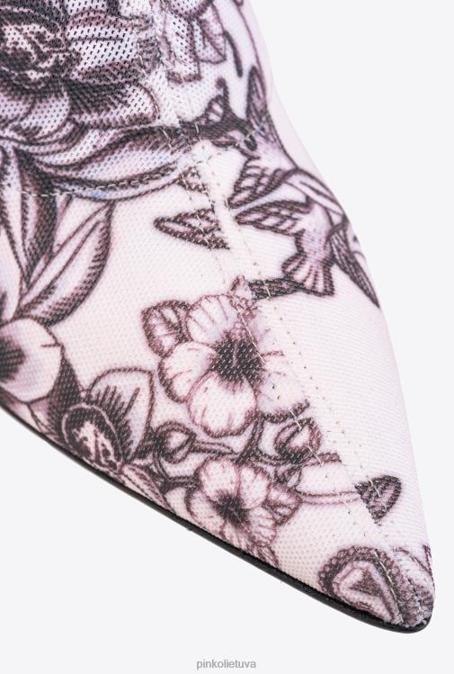 ilgaauliai iš tankaus tinklinio audinio su dekoratyviniu gėlių raštu. siaurėjantis pirštas ir odinis padas su 10 cm aukštakulniu. paminkštintas vidpadis.