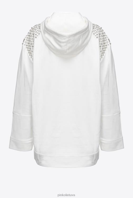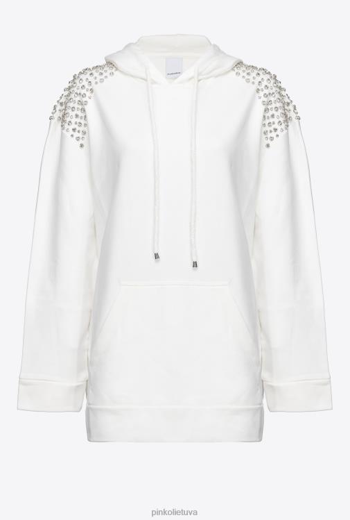 ilgas medvilninis gobtuvas su pečiais, papuoštais blizgančiomis brangakmenių aplikacijomis su įvairaus dydžio kristalais. gobtuvas su raišteliu, ilgos žemos rankovės ir kišenė priekyje. - Modelis yra 175 cm ūgio ir dėvi 40 dydį.