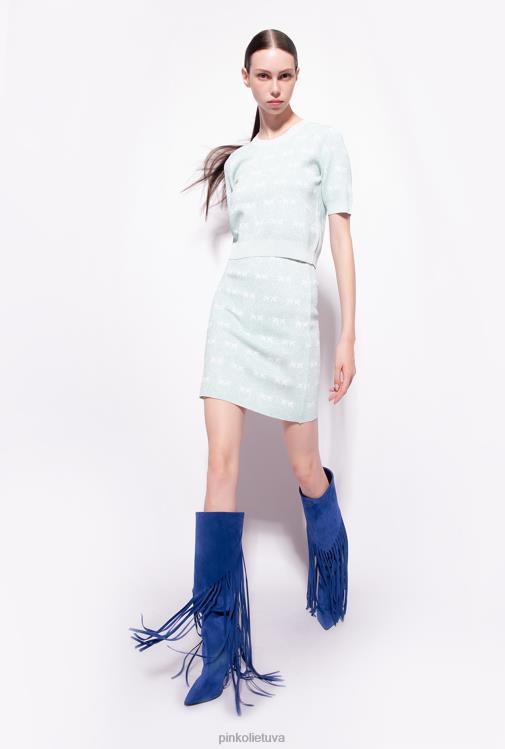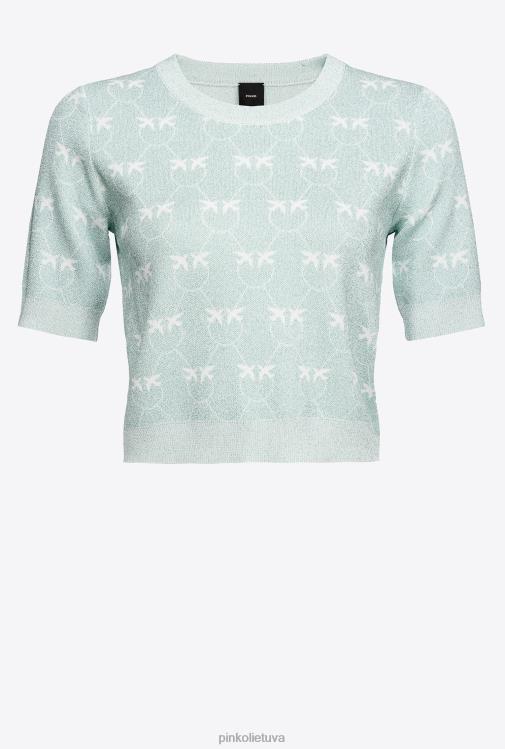 megztiniai | DH06P450 karpytas lurekso monograminis megztinis Pinko akvamarinas/baltas