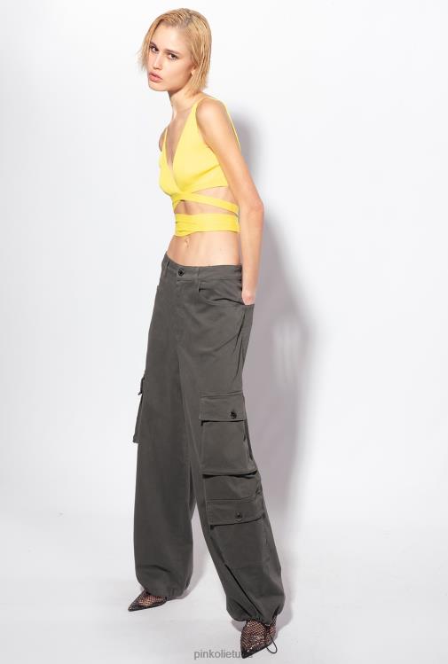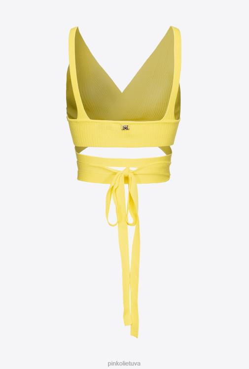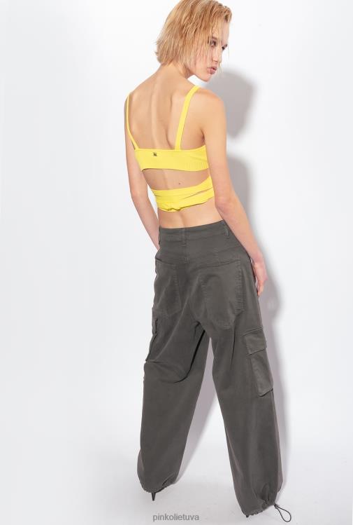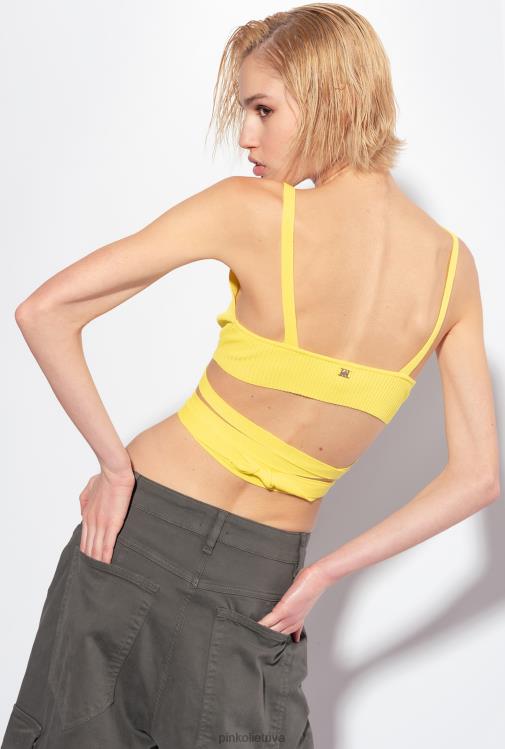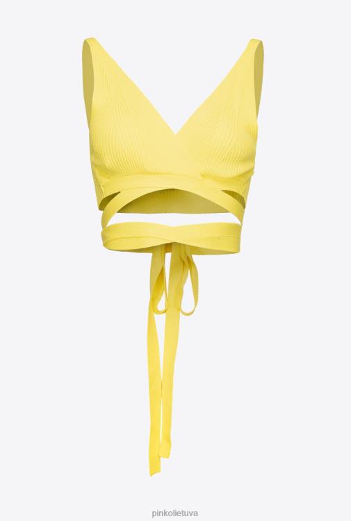 apyrankės viršus iš briaunos trikotažo elastingo viskozės krepo. V formos iškirptė priekyje, tiesi iškirptė gale ir apnaša, pritaikyta meilės paukščių logotipui. ilgi raišteliai apačioje. - Modelis yra 175 cm ūgio ir dėvi 40 dydį.